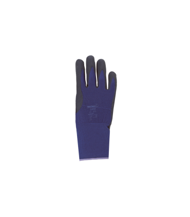 Gants bleus, sans coutures, paume avec revêtement microporeux de nitrile noir, profil antiglissant.